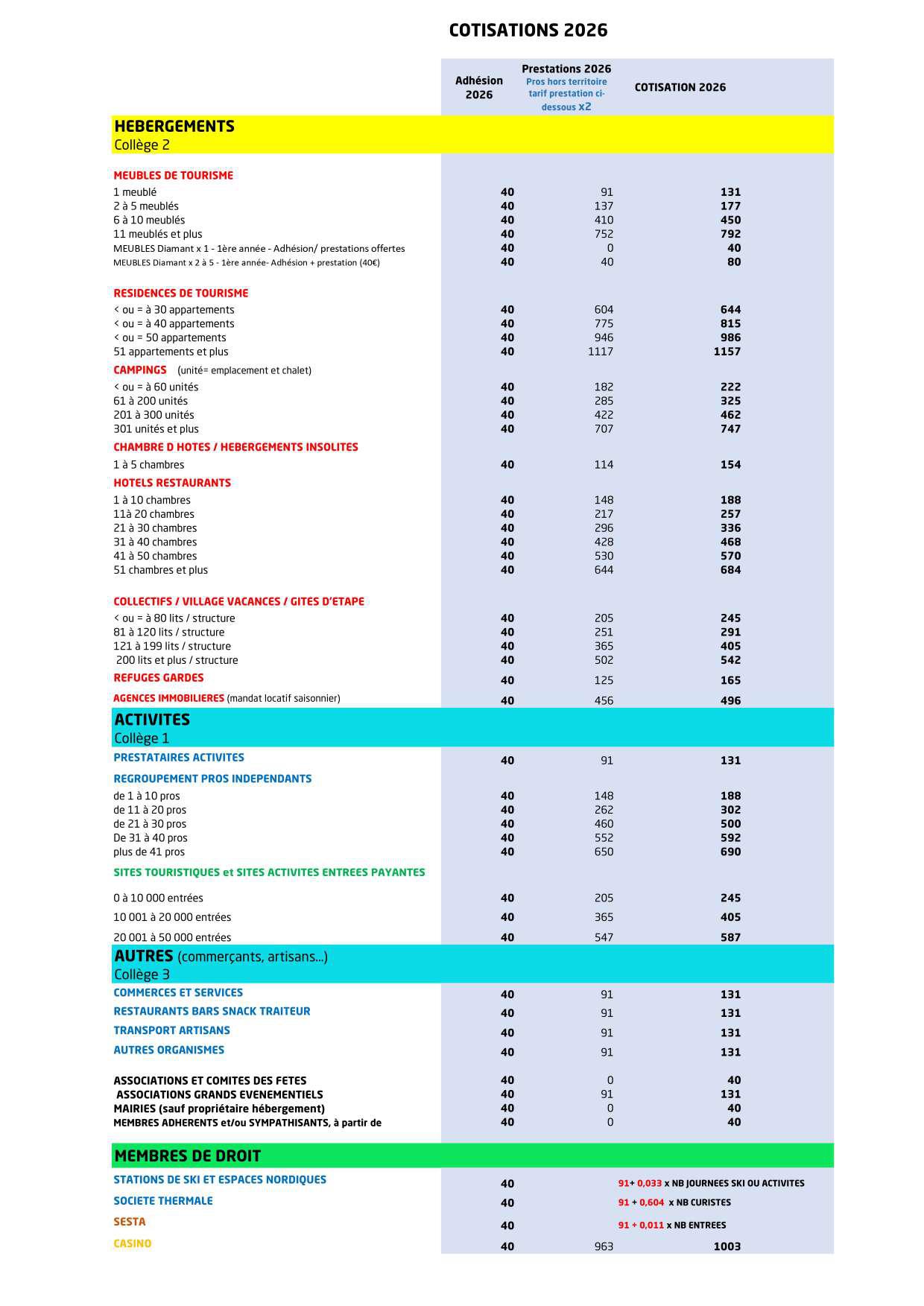 Lors de l’Assemblée Générale de l’Office de Tourisme des Pyrénées Ariégeoises 2025, les montants de cotisation à l’association ont été votés. Vous trouverez la grille ci-dessous.