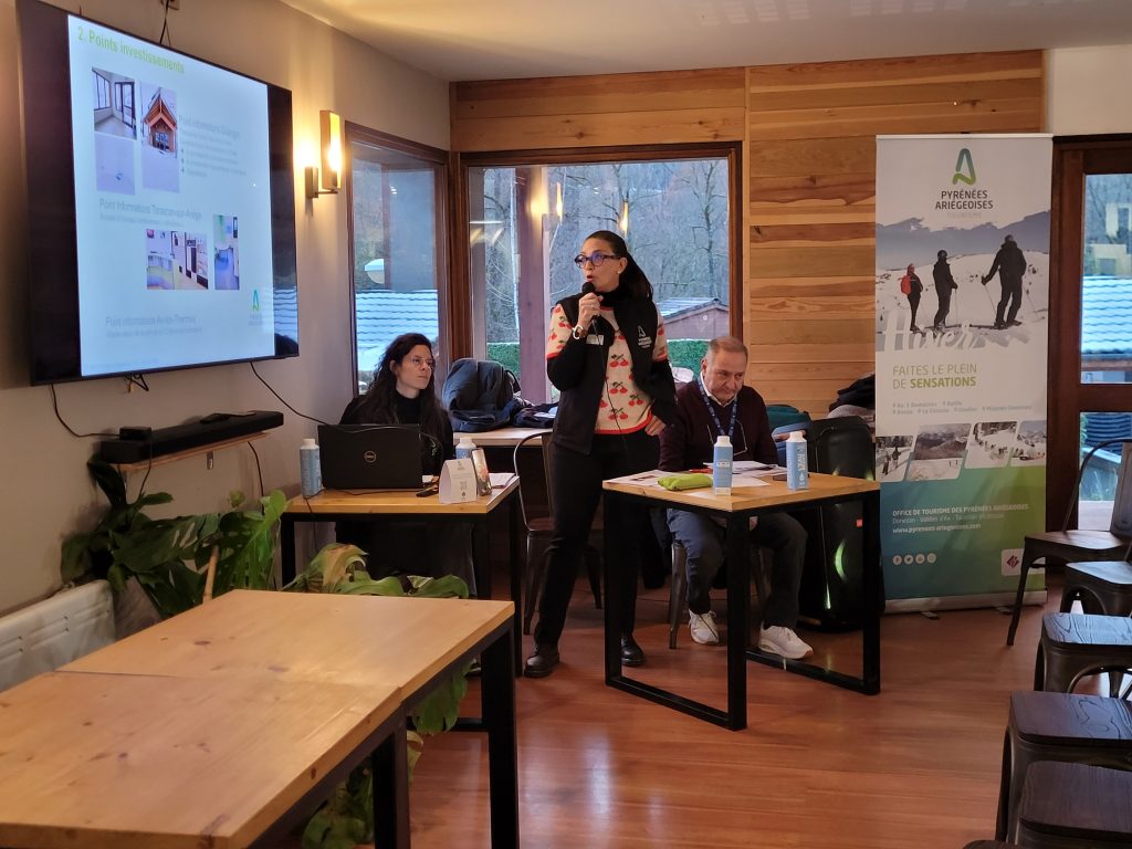 Suite au conseil d’administration, Xavier, Claire et Sylvie nous ont présenté les travaux menés par la commission clientèle catalane, puis Clément, de G2A Consulting, a exposé l’état des réservation chez les hébergements « Vallées d’Ax » pour les semaines et toute la saison à venir (qui affichent un certain retard comparé à l’an passé), quelques discours encourageants, puis nous avons pu échanger, mieux nous connaître, pour mieux…nous prescrire !